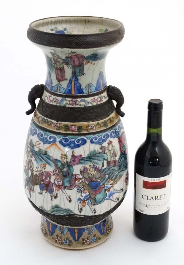 A large Chinese crackle glazed two handled vase