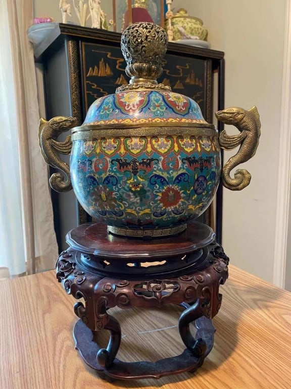A copper-tired cloisonné enamel dragon pattern three-legged aromatherapy stoveMar 21, 2026One piece of Qianlong year system ( yellow ground intertwined lotus, green field anchovy flowers,Mar 14, 2026A piece of Qing Qianlong pastel carmine rolling road has Fenglaiyi binaural heart turning bottle456 Lots AwayQianlong Nian Zhi Cloisonn? Enamel Incense Burner with Three Beast Feet, Double Phoenix Ears, and547 Lots AwayA gold-inlaid flower furnace of the Song Dynasty Longquan kiln6 days LeftTall Vintage Rose Medallion LampA Qing Dynasty precision cast copper tire cloisonné cloisonné enamel peach-shaped smokerMar 21, 2026A copper tire cloisonné enamel lion button smoker6 days LeftA three-legged incense burner with copper tire cloisonné (cloisonné) during the foreign exchange6 days LeftA beautiful copper-inlaid porcelain furnace Jun kiln becomes a long neck appreciation bottleMar 22, 2026A Qianlong era enamel purple background secretly engraved anchovy flower pattern coiled nine dragon6 days LeftA Ming Yongle dragon pattern facing the sky ear pattern furnace2 days LeftXuande Nian Zhi Cloisonn? Enamel Incense Burner "Peaceful Elephant"621 Lots AwayLarge Cloisonne Incense Burner with Beast-shaped Knob and Two Dragons Playing with a Pearl15 hrs LeftA Chinese Famille Rose on Celadon-Ground Double-Mar 12, 2026A Ming Dynasty fine cast copper tire wrong silver wire gluttonous pattern dragon ear smokerMar 18, 2026