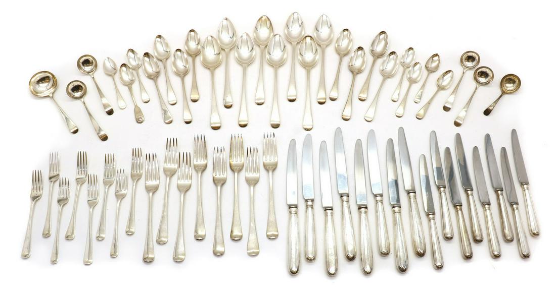 Lot of silver utensils. To include: continental lion handle spoon, shaped bowl serving spoon,Mar 01, 2026Large lot of sterling silver and silver handled utensils. To include: Durgin serving fork and spoonMar 01, 2026Towle Sterling Silver Flatware ServiceFeb 28, 2026800 silver cutlery setFeb 26, 2026Gorham Sterling "Etruscan" Flatware ServiceFeb 26, 2026Fifty one American, English and French Sterling flatware and Serving Pieces5 days LeftA SILVER FIDDLE, SHELL AND THREAD PATTERN TABLE SERVICE2 days LeftAssortment of sterling silver flatware. To include: set of 8 Ball Black & Co. dinner forks; set ofMar 01, 202646PC GORHAM STERLING FLATWARE SERVICE, 47.3 TOWMar 07, 2026Stieff Sterling "Puritan" Flatware ServiceFeb 26, 2026A Reed and Barton Hepplewhite Plain Pattern Sterling Partial Flatware Service5 days LeftAmerican Sterling Flatware ServiceFeb 26, 2026International Sterling "Angelique" Flatware ServiceFeb 26, 2026International Prelude Sterling Flatware, 88 Pieces, Jimmy Carter ProvenanceFeb 25, 2026Stieff Sterling "Rose" Flatware ServiceFeb 26, 2026R. Wallace & Sons sterling silver flatware service. To include: 12 spoons, 12 dessert forks, 12Mar 01, 2026