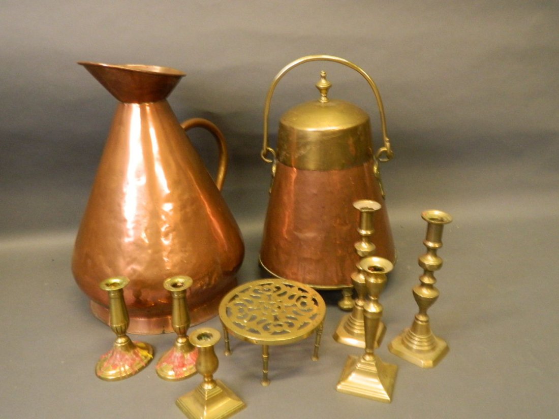 Lot 7 Vintage Brass Candlesticks2 days LeftHUGE LOT ANTIQUE ENGLISH BRONZE & BRASS WAREMar 07, 2026Lot of 3 Southwest Style Copper Kitchenware ItemsMar 04, 2026LOT OF BRASS KEROSENE LAMP BASESFeb 26, 2026LOT OF TWO COPPERWARE PIECES WITH BRASS HANDLESMar 07, 2026Vintage Copper Assortment, Various Mfgs7 days LeftHand Forged English Copper and Brass Handled Coal Scuttle w/ Hammered Copper Jardiniere/CauldronMar 16, 2026(2) COPPER CHAFFING DISH & FIGURAL MOUNTED SAMOVAR / HOT WATER URN4 days Left3 Antique Copper & Brass Powder FlasksMar 07, 2026(4) COPPER & BRASS KITCHENWARE, LADLES, PITCHER & BRAZIER4 days LeftPewter and Sterling Serveware [202 grams]Feb 25, 2026Collection of Antique Copper Kettles3 Antique Copper & Brass Powder FlasksMar 07, 2026Copper and Brass Kettle, c.1930EIGHT LAMP-RELATED ITEMS 19th CenturyMar 04, 2026TEN ASSORTED BRASS AND COPPER LAMPS First Half of the 19th Century Heights from 3.5" to 8.5".Mar 04, 2026