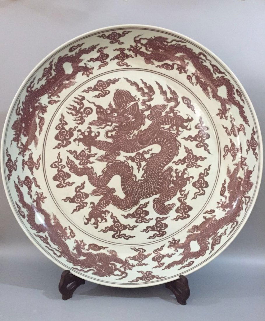 A LARGE COPPER-RED 'DRAGON' PLATE