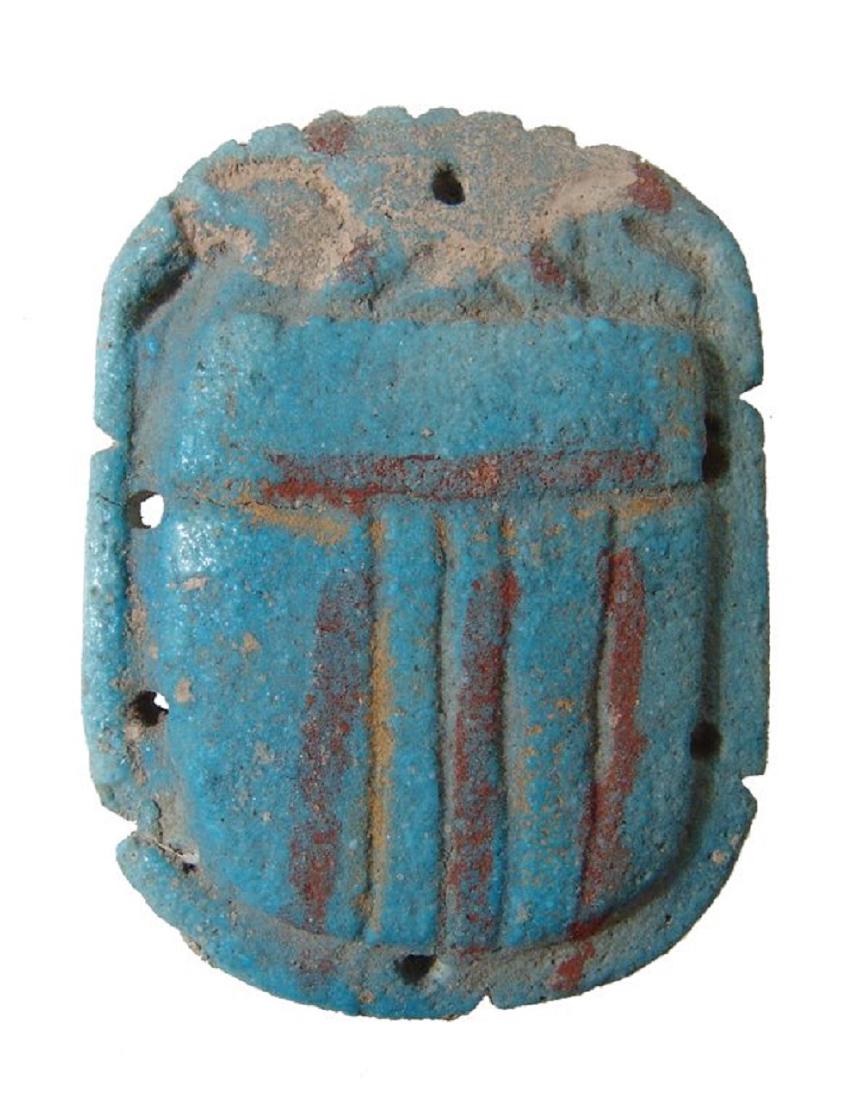 A large Egyptian faience pectoral scarab