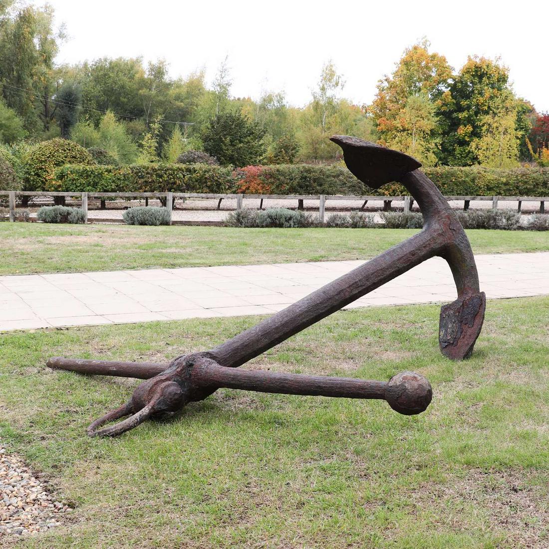 A large iron ship's anchor,