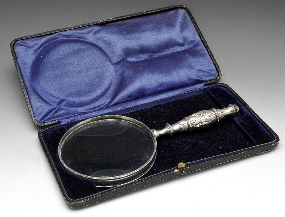 Individually Knotted Baroque Pearl Necklace with BoxMar 04, 2026Victorian Mother-of-Pearl Handled Dessert Cutlery Set by Walker & HallA gilt bronze framed magnifying glass with a jade handle and tourmaline gemstones3 days LeftVictorian-Era Prostitute Kit with Revolver and CuriosFeb 28, 2026Birmingham 1890 by Hilliard and Thompson, and London 1807 by Eley and Fearn An assembled George III3 days LeftFINE CASED CIVIL WAR ERA LARGE BORE TRANTERMar 01, 2026Antique 19th-Century Gamblers Kit w/ Four-Barrel Derringer Pistol, Push Knife, Playing cards & More!Feb 28, 2026Tiffany Studios Zodiac Magnifying Glass Antique Bronze Circa 19105 days LeftAntique American 21 Jewel Pocket Watch in Illinois 10 Year Gold-Filled CaseMar 07, 2026Gould-Type Simple Microscope, Unsigned, C. 1840Feb 25, 2026A cased silver-gilt and enamel writing set William Hornby, London 1912 with French control marksEnglish Victorian Coromandel Wood Travel Vanity CaseFeb 24, 2026A silver and enamelled magnifying glass Synyer & Beddoes, Birmingham 1912Imperial Faberge Era 14k White Gold Lorgnette Glasses2 days LeftOrnate Engraved Antiq. Belgian Pin-Fire RevolverMar 07, 2026Interesting German Type VII-C “Grave Wolf” U-96 Submarine Crystal Ball Table Clock in Ca