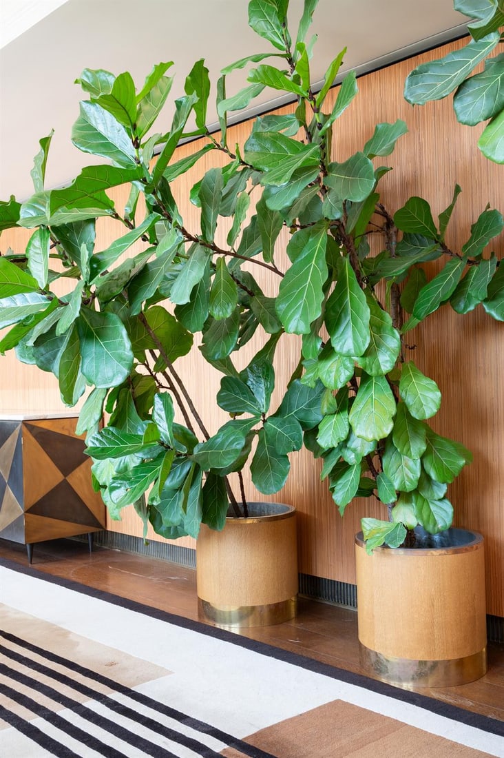 A LARGE OAK AND BRASS BOUND PLANTER, MODERN