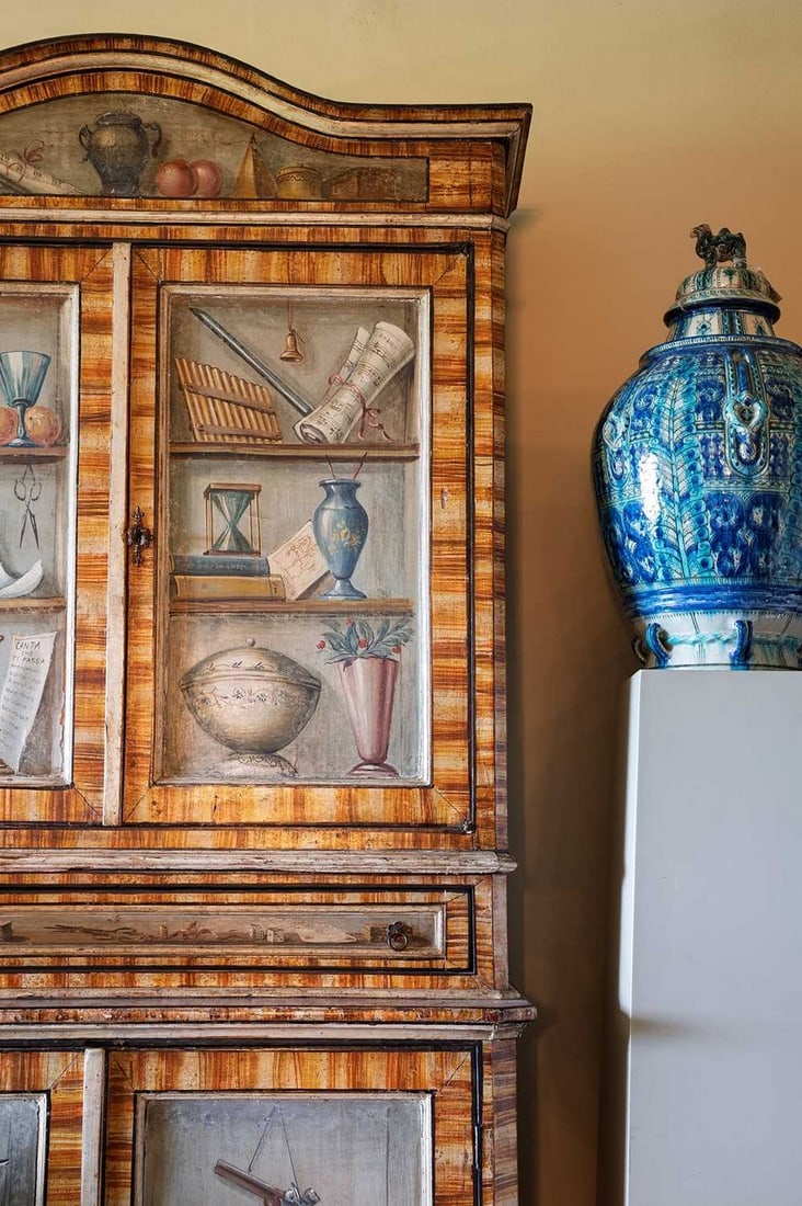 A large painted tromp l'oeil cabinet,