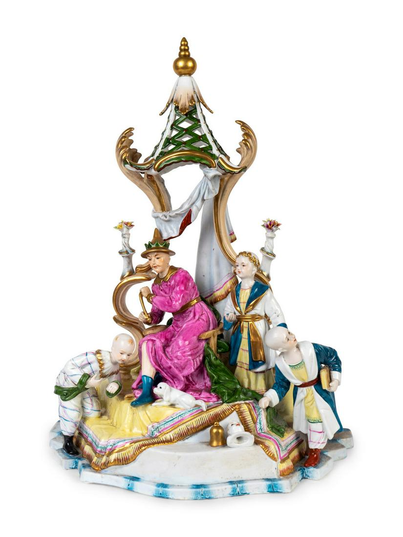 A lot of four various decorated porcelain figural groups1 day LeftVintage Chinese Porcelain "Money Tree" Figurine – 16" Ornate Statue with 7 Maidens & Gold AccentsMar 28, 2026A German Ludwigsburg marked figural decorated porcelain group1 day LeftA MEISSEN PORCELAIN 'ELEMENTS' EWER EMBLEMATIC OF WATER7 days LeftGroupe pastoral en porcelaine de Doccia, vers 1780-90 A Doccia pastoral group, circa 1780-90Dresden German Porcelain Candelabra and CandlesticksMar 28, 2026Statuette en porcelaine de Meissen représentant une sultane, vers 1740A Meissen figure of a...An imposing German porcelain flower encrusted figural centerpiece, possibly Meissen, 19th century3 days LeftStatuette en porcelaine de Meissen représentant une bergère, circa 1750A Meissen figur...Meissen "The Elements - Air" Porcelain Figure4 days LeftA German Meissen finely decorated porcelain figural romance group1 day LeftAn Exquisite Filigree and Gilding Inlaid White Jade Statue of Avalokitesvara,Inlaid GemsMar 07, 2026MEISSEN PORCELAIN CENTERPIECE AS A TABLE LAMPMar 07, 2026Magnificent & Rare 19th C. English Porcelain Centerpiece Retailer’s Mark Daniell5 days LeftAntique Meissen Porcelain Large Urn H: 20.8" W: 9"7 days LeftLate 18th Century Kpm Porcelain Toureen in the Meisen Taste