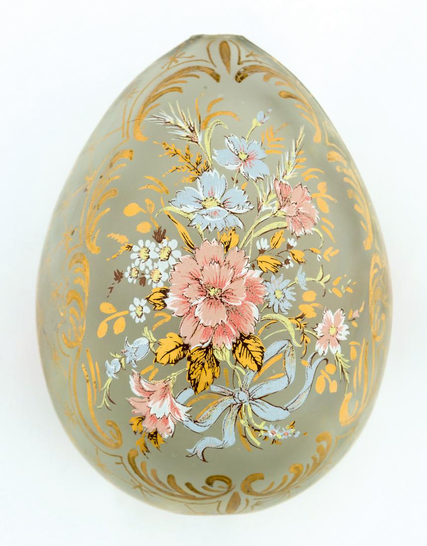 A LARGE RUSSIAN GLASS EASTER EGG SHOWING FLOWERS