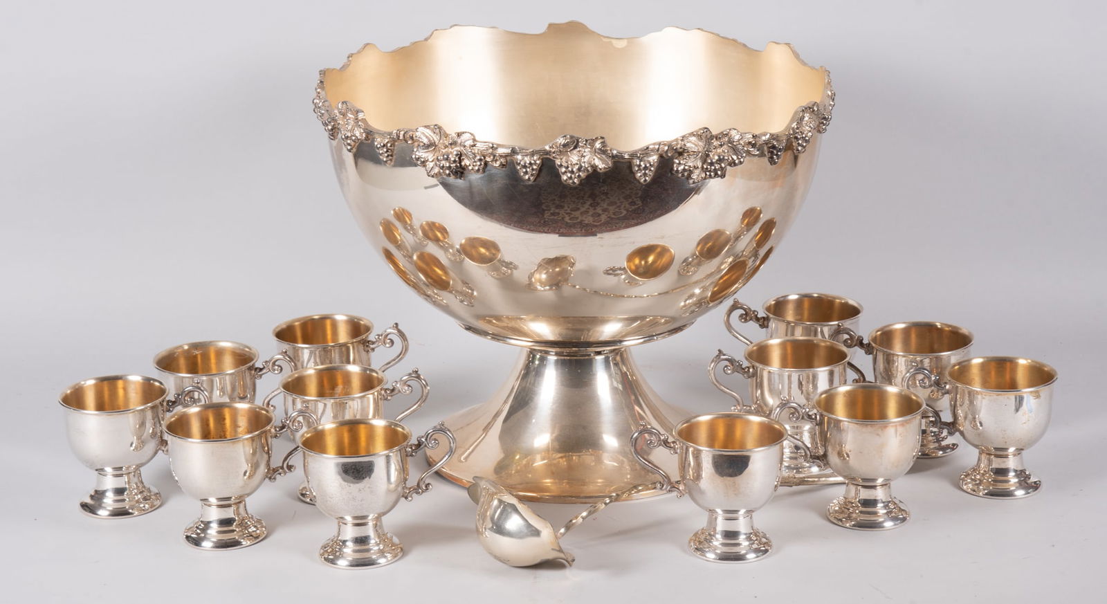 Lot 4 Vintage Emb Silver Plated Tableware India+6 hrs LeftArthur Court Grape Pattern Aluminum Serveware Group Ice Bucket Coasters Corkscrew Serving UtensilsMar 17, 2026Large Silver Plate Punch Bowl Set with Twelve Cups, Ladle, and Tray3 days LeftSilver-Plated Repousse Centerpiece BowlMar 14, 2026Mottahedeh Winterthur Adaptation Style Silverplate Montieth/Punch BowlMar 17, 2026Set of 10 Silver Plated Gold Washed Pedestal Punch Bowl CupsMar 28, 2026LARGE ANTIQUE GERMAN 830 SILVER CENTERPIECE CRYSTAL BOWL3 days LeftFrench Silver Plate Champagne Bowl Repousse Grapevine Design Circa 1960Mar 22, 2026English Silver Inlaid Bowl245 Lots AwayLarge Gorham Silver Plated and Fluted Punch BowlMar 13, 2026Continental Silver Footed Fruit Bowl,Mar 13, 2026Late Victorian Sterling Silver Pedestal Fruit BowlMar 13, 2026American Sterling Silver Serving Bowl with LinerMar 14, 2026Mid 19th Century Austro-Hungarian Silver and Crystal Twin Handled Pedestal Bowl,Mar 13, 2026Woshing; Chinese Incised Repousse Silver BowlMar 15, 2026Reticulated Silver Bowl Along w/ a DishMar 18, 2026