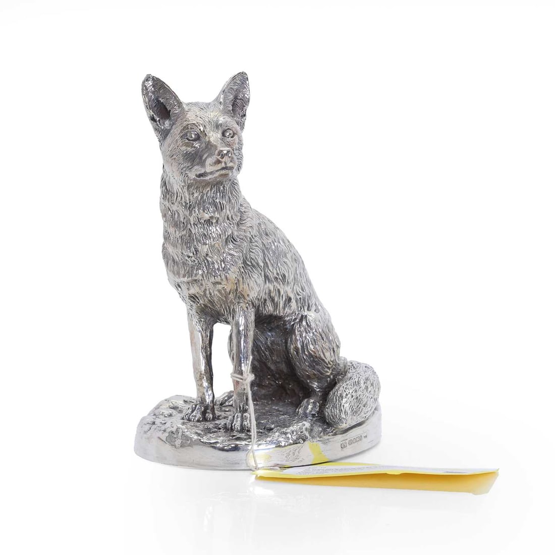 A large silver sitting fox 21st century