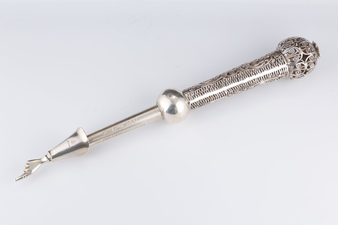 A LARGE SILVER TORAH POINTER. New York, c. 1900. The