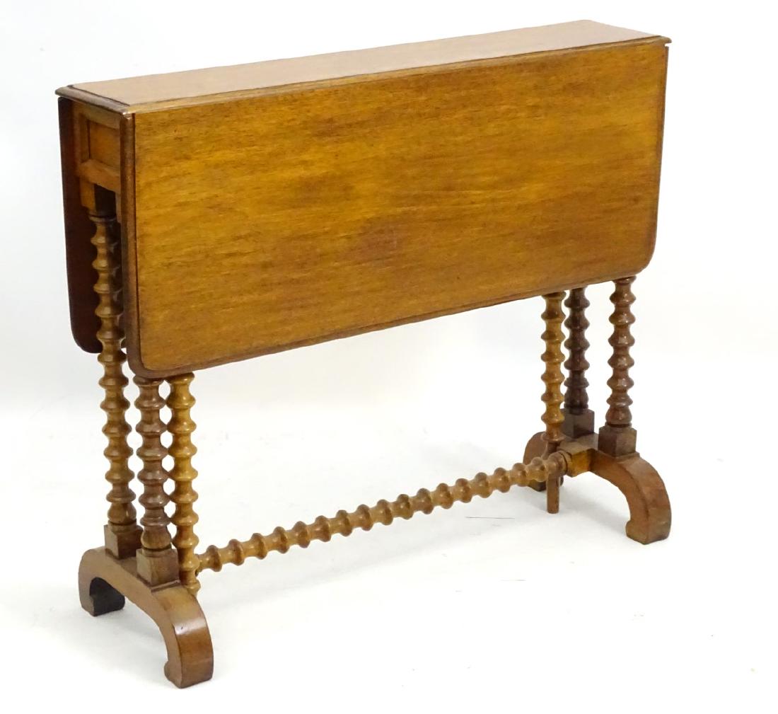 A late 19thC walnut Sutherland table with turned legs