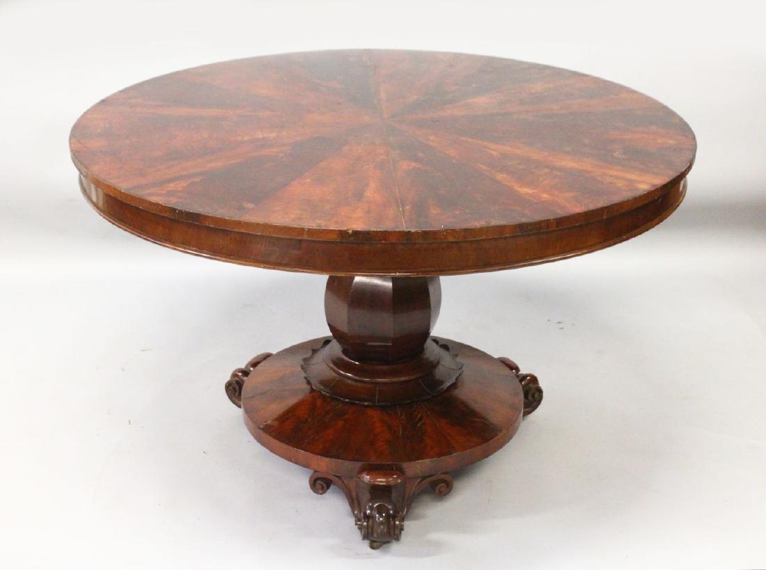 A LATE REGENCY ROSEWOOD CIRCULAR SEGMENTED TOP DINING