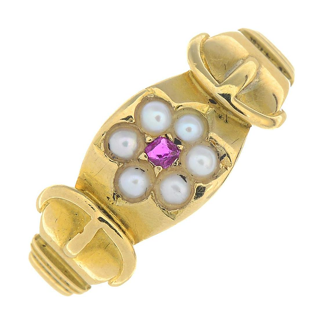 Victorian 9k Rosy Yellow Gold Seed Pearl Red Gemstone Cocktail RingDiamond Depot4.3(10)$4502 days Left