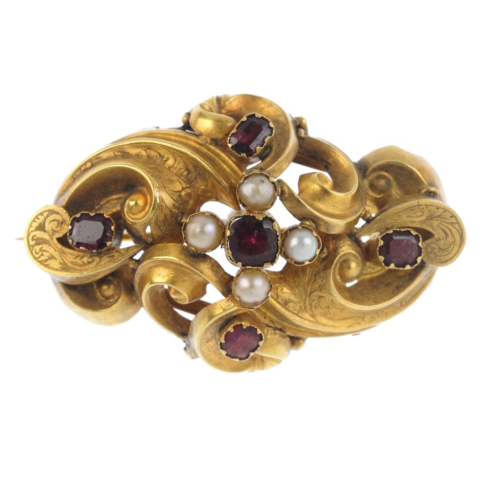 A late Victorian foil-back garnet and split pearl