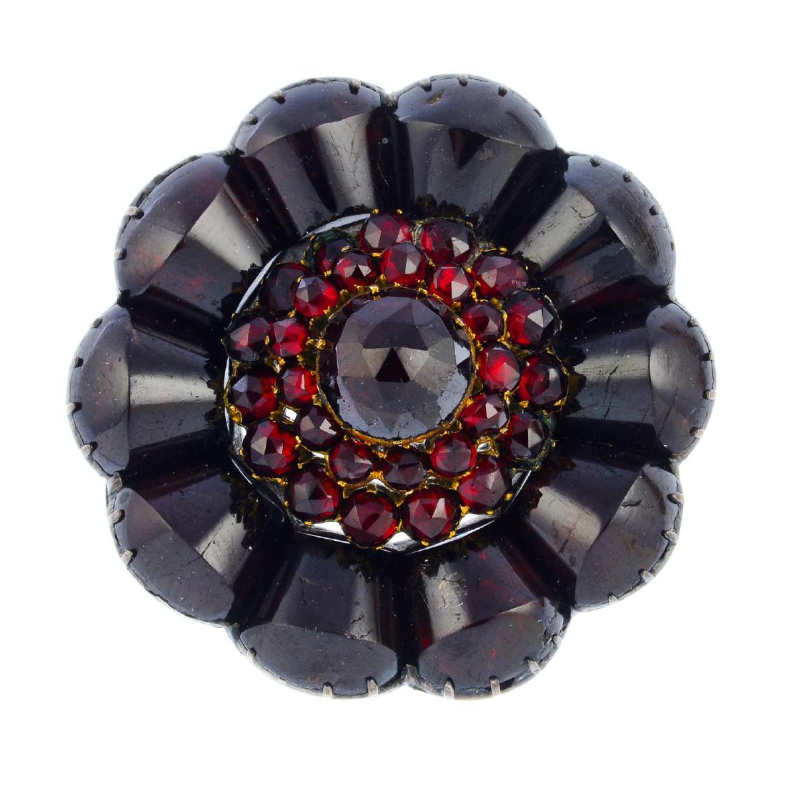 A late Victorian garnet brooch. Designed as a