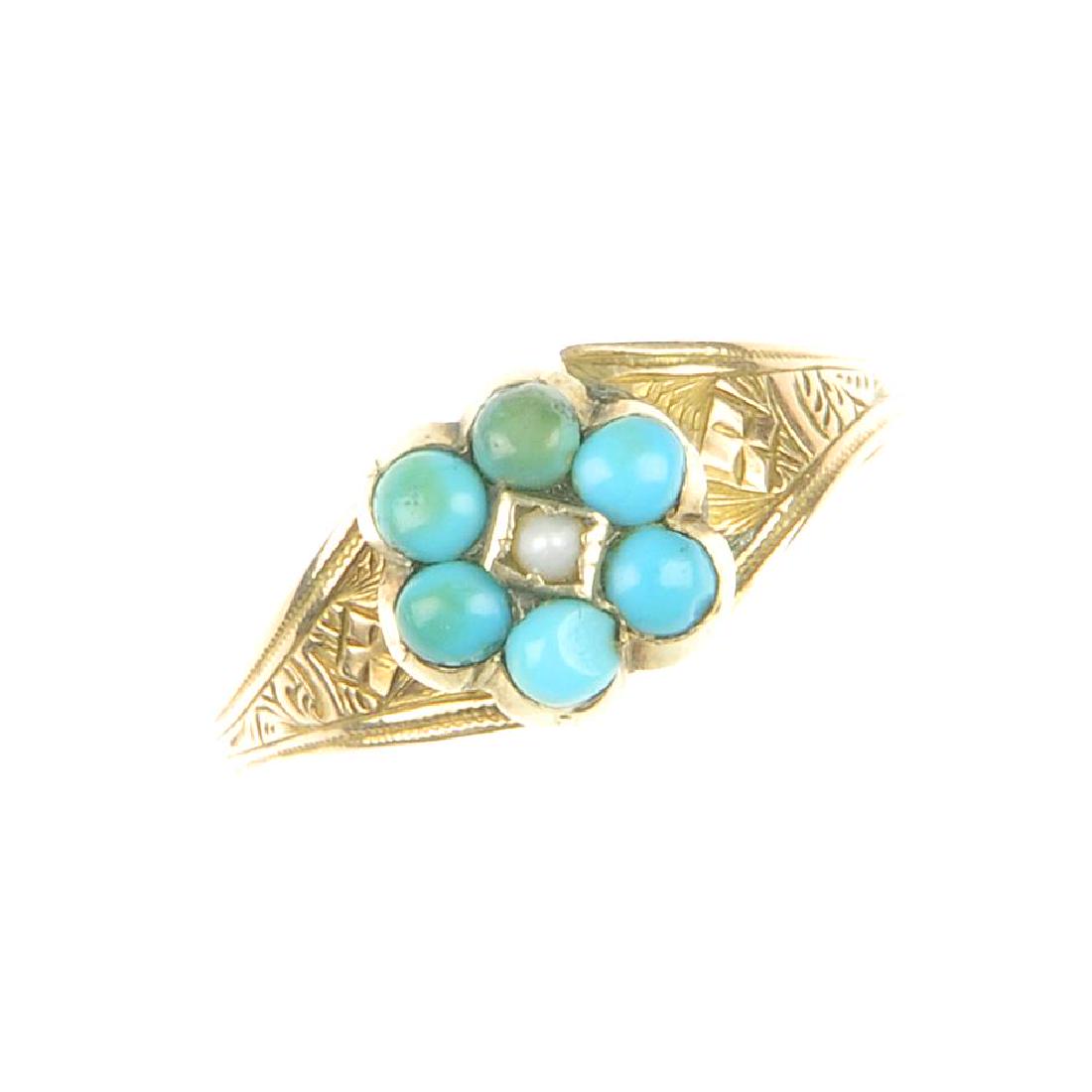 A late Victorian gold, turquoise and split pearl ring.