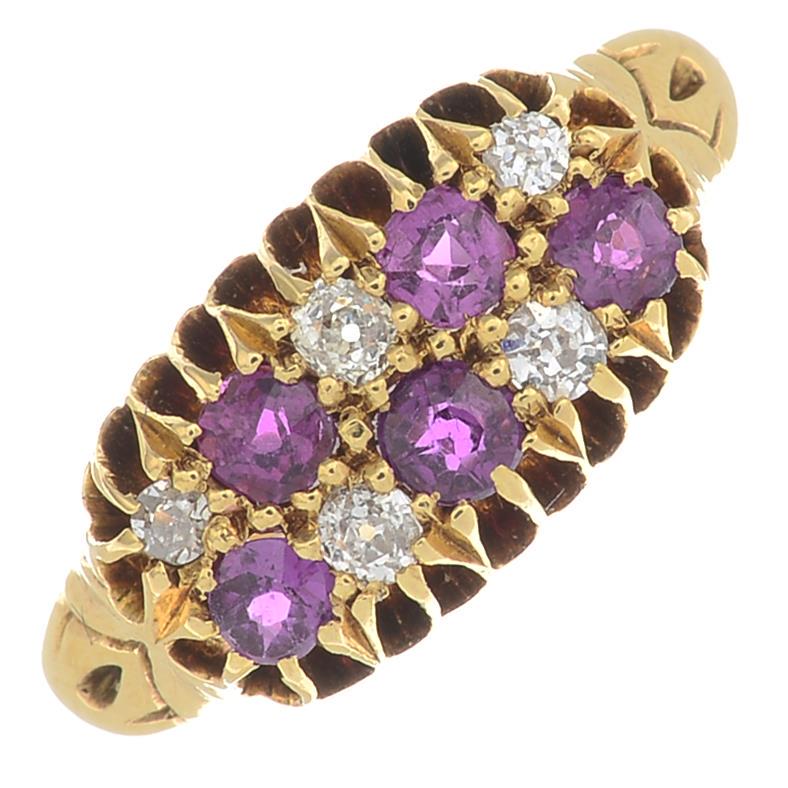 A late Victorian ruby and diamond ring. Estimated total