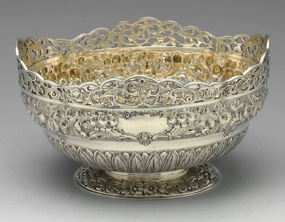 George III Style Silver Plated Oval Center Bowl with Cut Glass LinerLondon 1885 by Thomas William Dobson and Henry Holmes Dobson A Victorian sterling silver twinFeb 18, 2026Vintage Italian Vercelli 800 Silver BowlFeb 18, 2026A SILVER SHAPED CIRCULAR BOWLFeb 17, 2026HEAVY SILVER-PLATED CIRCULAR PEDESTAL-BASE CENTER BOWL H: 7 7/8 in. D: 12 7/8 in.4 days LeftOval jardinière consisting of a richly chiselled silver mount with graceful cartouches, acanthusFeb 15, 2026800 Austrian Silver Glass Art Nouveau Footed Bowl3 days LeftBali circa 1950 A mid-20th century Indonesian unmarked silver flower offering bowlFeb 18, 2026An Edwardian silver bowl by Charles Stuart Harris & Sons, London 1907A SILVER TWIN HANDLED CENTREPIECEFeb 17, 2026London 1880 by William Hutton and Sons A Victorian sterling silver gilt sugar basketFeb 18, 2026Frank Whiting Sterling Floral Repoussé Scalloped Bowl, #1543E11 hrs LeftA QUEEN ANNE BRITANNIA STANDARD PUNCH BOWLFeb 17, 2026AN EDWARDIAN LARGE SILVER TWIN HANDLED BOWLFeb 17, 2026Handmade 925 Sterling Silver Floral Lace Fruit Bowl 16.5"4 days LeftA LARGE SILVER TWIN HANDLED BOWLFeb 17, 2026