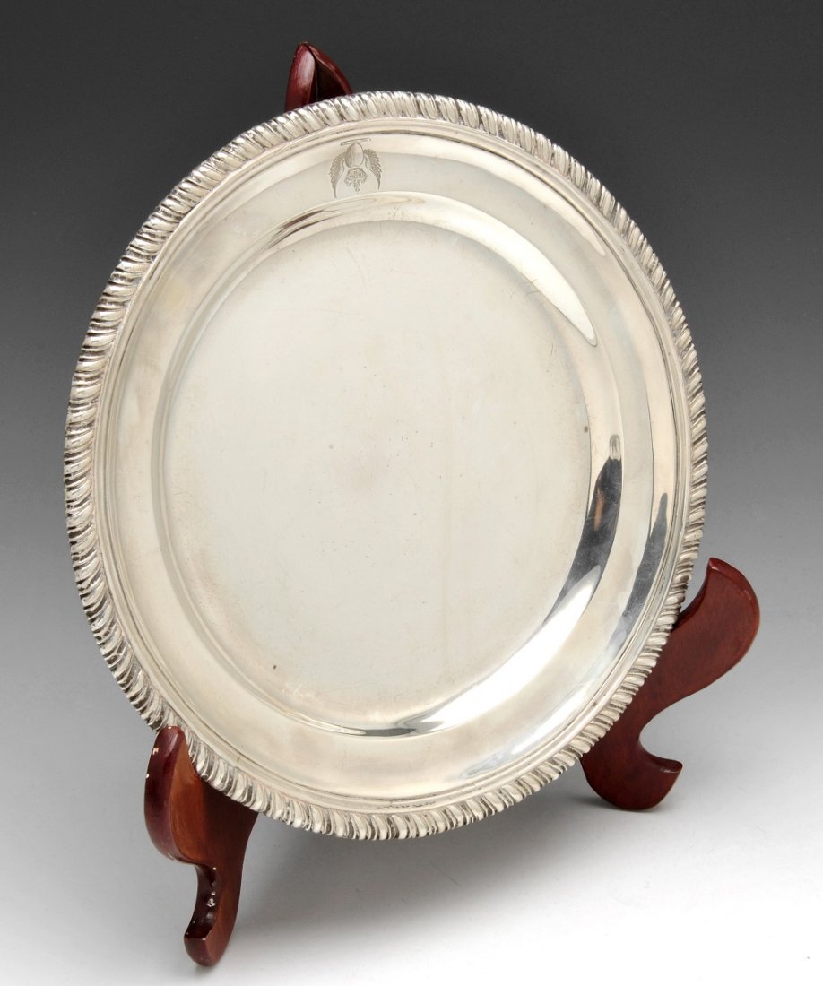 IMPORTANT GEORGE III PAUL STORR SILVER TRAY12 hrs LeftGeorge II silver "tontine" salver, ex BonhamsFeb 19, 2026Rococo Style Silver Footed Salver6 days LeftENGLISH PRESENTATION SILVER SALVER, 1370g12 hrs LeftElizabeth II Silver Salver, Retailed By Tiffany & Co.Feb 12, 2026Austro-Hungarian .800 Silver Charger3 days LeftPAUL STORR - GEORGE III - DINNER SILVER PLATE, 18125 days LeftA GEORGE IV SILVER MEAT DISH MARK OF PAUL STORR, LONDON, 1820Feb 19, 2026A SCOTTISH SILVER SHAPED CIRCULAR SALVERFeb 17, 2026George III Silver Salver Engraved with ArmorialFeb 12, 2026English Silver Salver2 days LeftGeorge III Sterling Silver SalverFeb 11, 2026A GEORGE III SILVER SHAPED CIRCULAR SALVERFeb 17, 2026John Carter II English George III Sterling Silver Salver with Crest 8.6in3 days LeftGEORG ROTH & CO. .800 SILVER OVAL TRAY, C. 1900Feb 22, 2026Scottish George III Sterling Silver Salver3 days Left