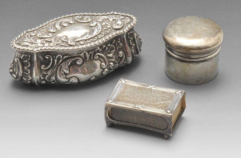LOT OF SILVERPLATE, MIRROR AND MORE4 days LeftItalian Silver Snuff Boxes2 days LeftSilver Items, Russia2 days LeftGORHAM STERLING SILVER NUT DISHES, & STERLING SILVER TUMBLER3 days LeftContinental Silver-Plated Jewelry Box2 days Left6 Miniature Silver Boxes & VinaigretteMar 14, 20263 Miniature Sterling BoxesMar 14, 20265 Miniature Silver BoxesMar 14, 20263 Sterling Snuff BoxesMar 14, 202619th C. Levi & Salaman Silver & Crystal Snuff Box5 days Left16 Sterling and Silver Plate Cases2 days Left2 Small Trinket Boxes - 800 SilverMar 03, 20267 Metal BoxesMar 14, 2026Fine 3 Piece English Dutch Sterling Silver Box Collection 19005 days Left5 Miniature Silver BoxesMar 14, 2026A GROUP OF ENGLISH SILVER BOXES, 112g2 days Left