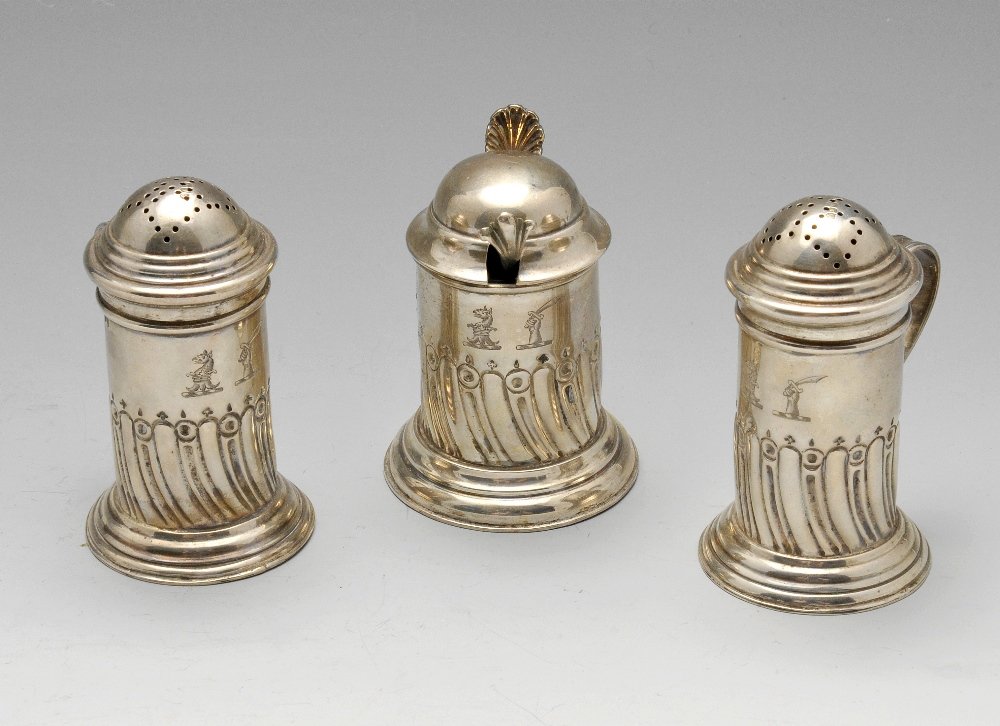 A late Victorian three-piece silver condiment set,
