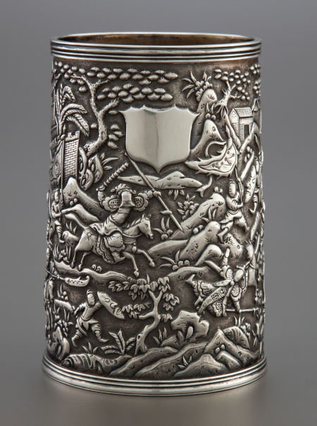 A LEECHING CHINESE EXPORT SILVER BRUSH POT Lee
