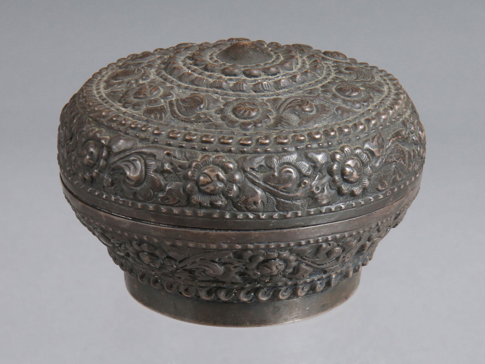 Chinese silversmith. Lidded jar richly decorated in relief with flowers and ornaments.Chairish Auctions4.5(10.4k)$120