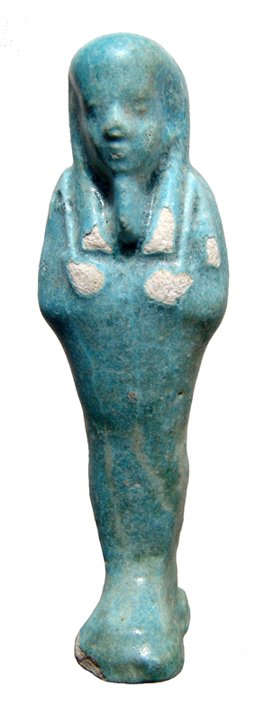 A light blue Egyptian faience ushabti