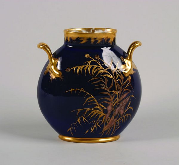 A Limoges Cobalt Handled Vase.