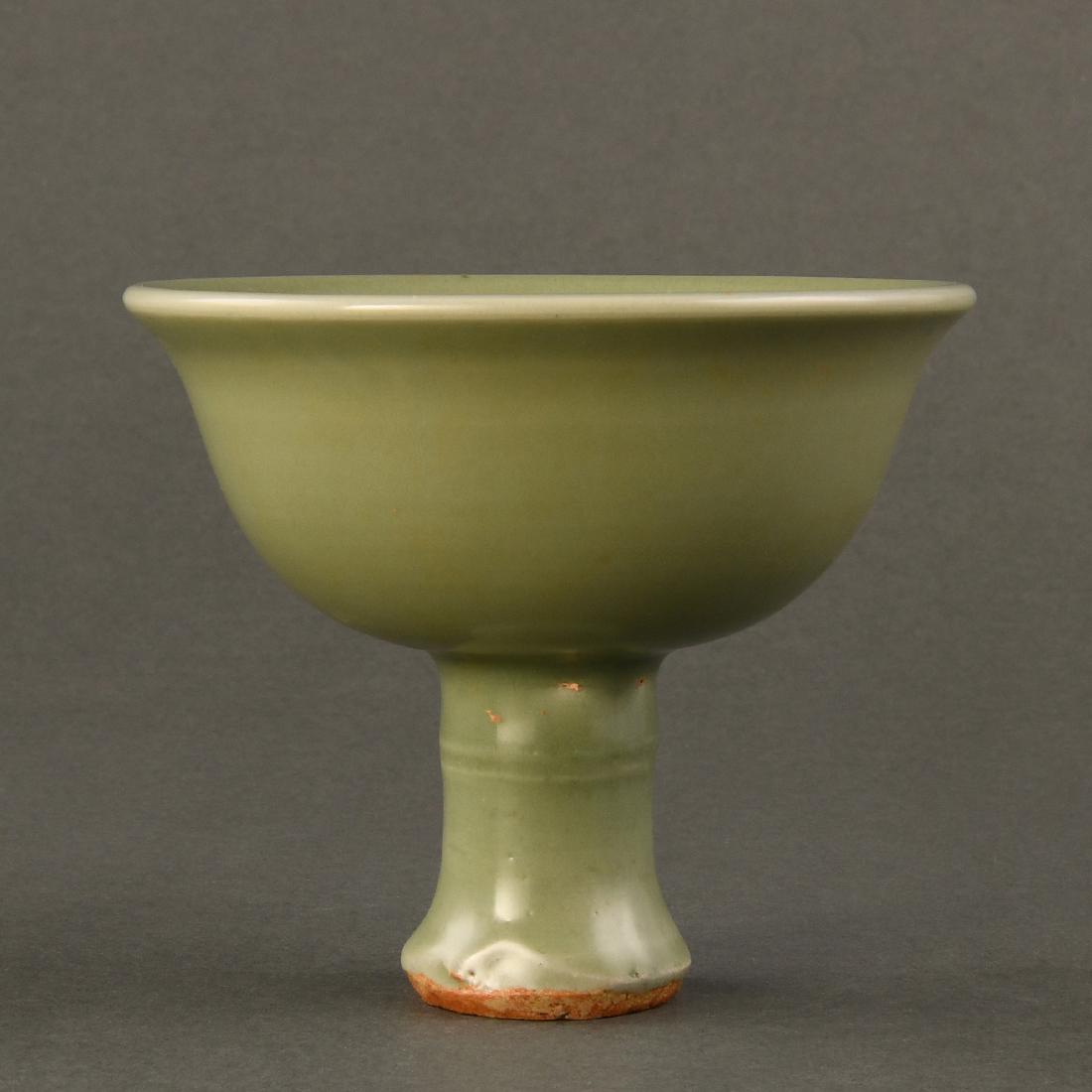 A 'LONGQUAN' CELADON CARVED STEMCUP