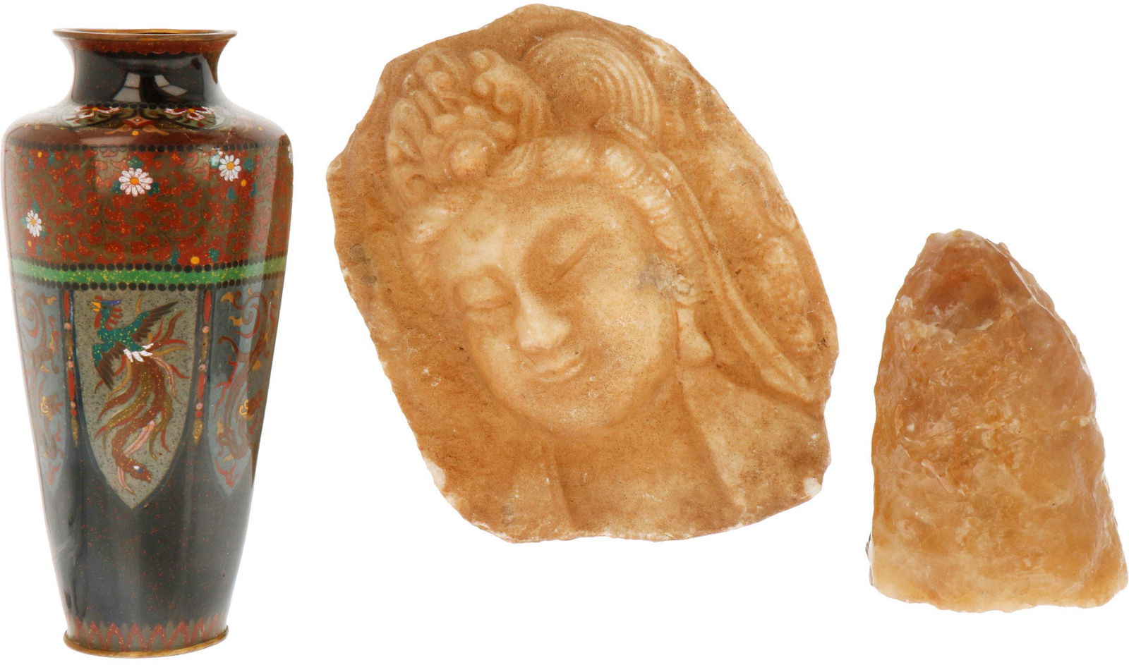 Group Lot of Bura Relics2 days LeftGROUP LOT JAPANESE PORCELAIN, CLOISONNE, ETC. 13 PMar 07, 2026LOT OF ASIAN JAPANESE PAINTED CERAMIC PORCELAIN VASES2 days LeftLot of 2 Antique Japanese Copper Enameled Cloisonne VaseMar 01, 2026A lot of three variously decorated and shaped Chinese porcelain vases5 days LeftKOREAN TIGER VASE POSSIBLE KOREAN COPPER BOWL SAKE BOTTLEMar 01, 2026Lot of 2 Japanese Cloisonne Enamel Vessels3 days LeftJapanese & Chinese Cloisonne Vases6 days LeftANTIQUE CHINESE FUNERARY CERAMIC FIGURINES AND VASESMar 01, 2026Pre-Columbian Style Figures Incl. Met Museum 3pcsFeb 26, 2026Assorted Small Chinese Ceramic Vases1 day LeftAntique (5) Carvings [Buddha]6 days LeftGrouping of Three Asian Figures (Two Wood, One Composite)Mar 07, 2026GROUP OF THREE VINTAGE JAPANESE CERAMIC VESSELSMar 01, 2026A collection of three Bernard Rooke ceramics,Vintage Asian Decor and etc.Mar 02, 2026