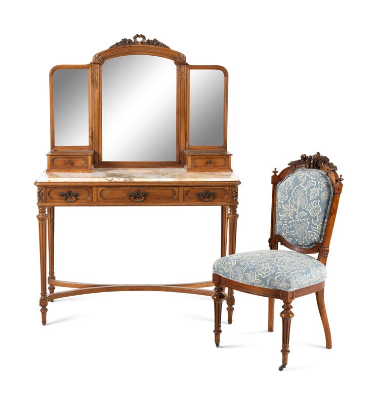 A Louis XVI Style Walnut Marble-Top Dressing Table