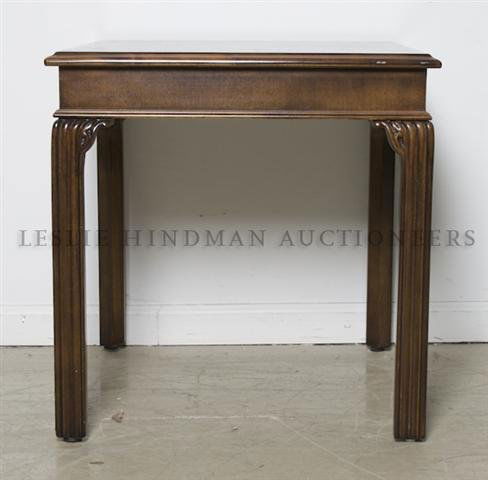 SoldA George III Mahogany Side TableA George III Mahogany Side Table Late 18th Century Height 31 3/4 x width 38 3/4 x depth 22 1/8 inches. This lot is located in Chicago.See Sold Price
