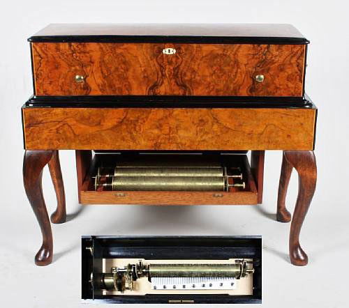 German Disc Music Box Marked Schute-Marke, Serial #230253Mar 21, 2026Cylinder music box4 days LeftAntiker Eck Vitrinenschrank199 Lots AwayAN ANTIQUE SWISS NICOLE FRERES MUSIC BOX playing six airs. Working. 47.5 cm wide, cylinder 26.5 cm w3 days LeftHammond No. 12 Typewriter, interchangeable shuttle mechanism, C-shaped element, holds all the typ...ANTIQUE SWISS CYLINDER MUSIC BOX IN WOOD CASE2 days LeftScrivania lastronata Noce Nord Europa, metà del XVIII secolo 76 x 118 x 71 cm Piano a bordoFeb 17, 2026Tavolo scrittoio lastronato Legni diversi Lombardia, fine del XVIII secolo 79 x 104 x 61 cm PianoFeb 17, 2026An Interchangeable Cylinder Musical Box, Swiss, circa 1880, 18cm high, 69cm wide, 27cm deepANTIQUE EUROPEAN WOODEN MUSIC BOXFeb 21, 2026Large Swiss cylinder music box4 days LeftBeistelltisch187 Lots AwayDiminutive NY Sheraton Mahogany Ladies SecretaryFeb 17, 2026Swiss-Made Music BoxFeb 24, 2026ANTIQUE SWISS CYLINDER MUSIC BOX FABRIQUE DE GENEVEFeb 21, 2026A PAIR OF LATE GEORGE III SILVER-MOUNTED, TULIPWOOD-BANDED, AND LINE-INLAID MAHOGANY KNIFE BOXESFeb 18, 2026