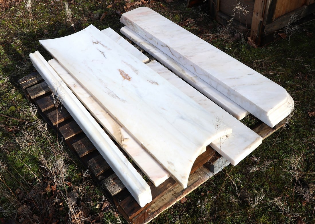 A marble fireplace,