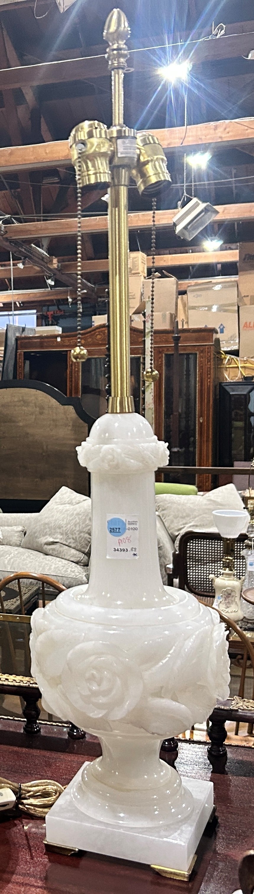 A Marbo alabaster table lamp with brass mounts