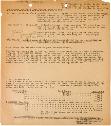 A Marilyn Monroe Annotated Note, Circa 1962.