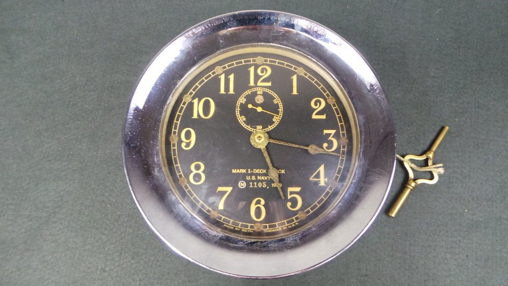 Neon electric clock by Say-It-In NeonMar 28, 2026U.S. Navy WWII 1939 Mark I Chrome Frame US Military Deck ClockMar 15, 2026CHELSEA U.S. MARINE CORPS EIGHT-DAY SHIP'S CLOCK Boston, 20th Century Dial diameter 6". Back plateFeb 26, 2026CHELSEA U.S. MARITIME COMMISSION BULKHEAD CLOCK3 days LeftVintage Seikosha Marine Clock6 days LeftBIGELOW, KENNARD & CO. SHIP'S BELL CLOCK Early 20th Century Height 7.5".Feb 26, 2026CHELSEA CLOCK CO US GOVERNMENT NAVAL SHIP CLOCKMar 01, 2026German Made Shelf ClockMar 06, 2026Seth Thomas brass ship's wheel clock with a 24-hour dialMar 02, 2026Chelsea Ship's Bell Clock 4.5 Inch MarinerFeb 25, 2026Vintage Master Crafters Atmos Style Electric Clock, Made in U.S.A.Mar 01, 2026Vintage New England Clock Co Time Strike Wall Clock, Schoolhouse Regulator, 22h x 16w x 5d inchesWestclox Scotty Pocket Watch, Mechanical Movement, Made in USA2 days LeftOmega 8 Days Desk Clock5 days LeftMinneapolis-Honeywell model 77 8-day mechanical clockMar 02, 2026SETH THOMAS "BELL OVER" OR "OUTSIDE TOP BELL" TWO-DAY SHIP'S CLOCK America, Circa 1900 Dial diameterFeb 26, 2026