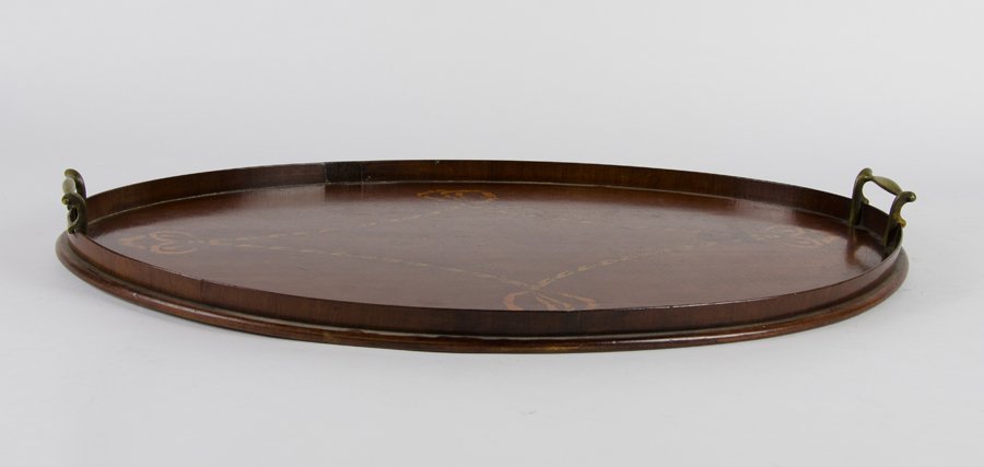 A MARQUETRY TWIN HANDLE SERVING TRAY
