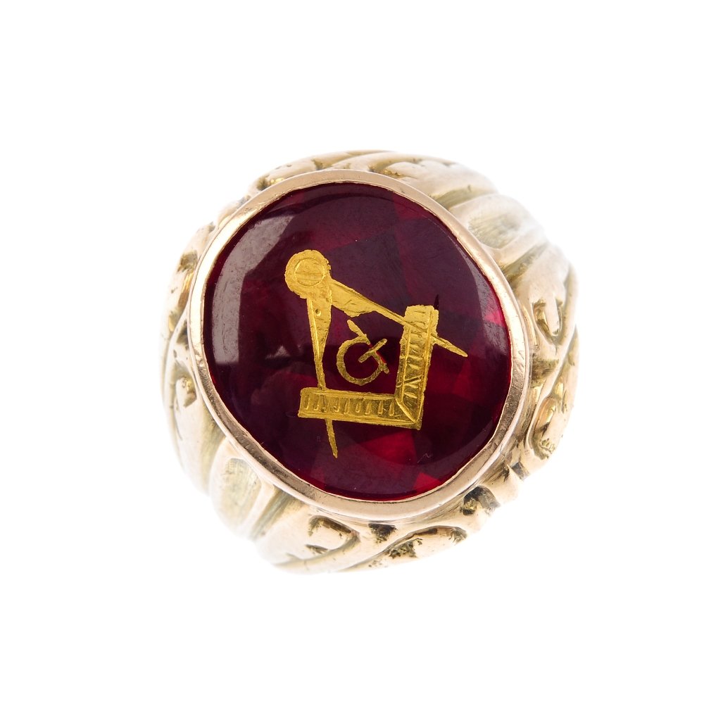 LAB-CREATED SAPPHIRE MASONIC SIGNET RING