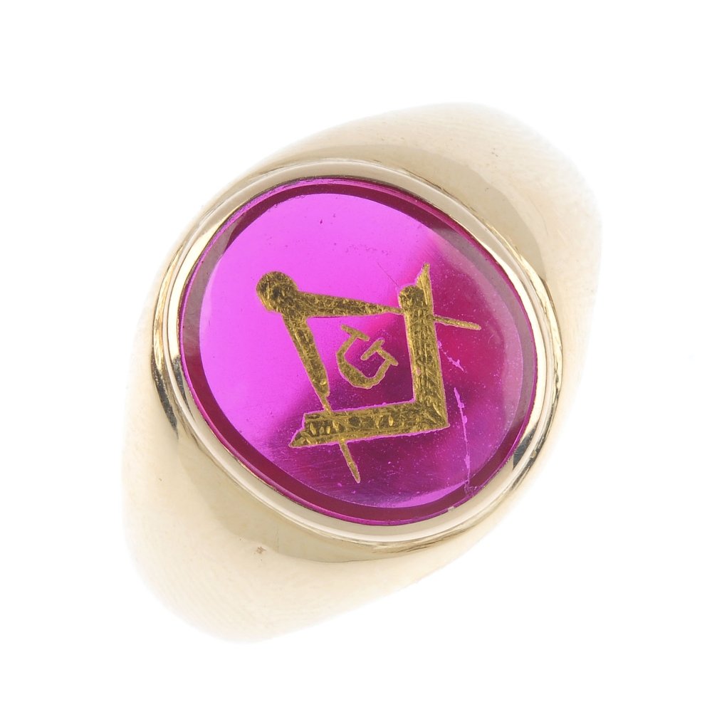 10K MASONIC RING WITH SYNTHETIC RUBY AND A NATURAL DIAMOND (SIZE: 11.75) 7.8GRAMModern Jewelry4.4(204)$1,3752 days Left