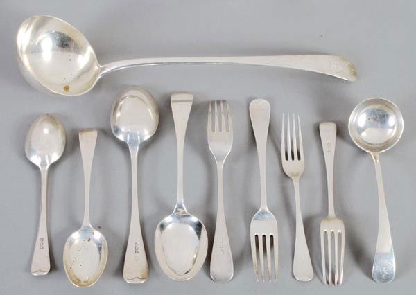 A matched silver Old English pattern table service