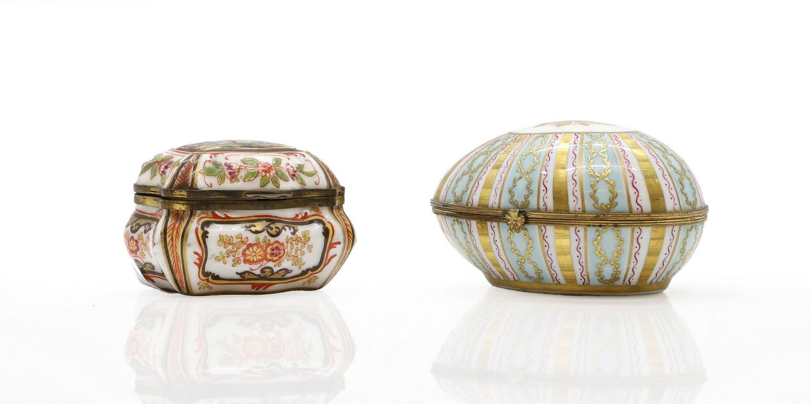 BRITISH HAND-PAINTED CERAMIC GAUDY-STYLE FLORAL TABLE ARTICLES, LOT OF TWO18 hrs LeftLimoges Hand-Painted Hearts Trinket Boxes 2pc LOTMar 12, 2026Chinese Bronze & Enamel Tea Caddy Boxes 2pc LOTMar 12, 2026A Meissen Porcelain Covered Potpourri Dish7 days LeftLarge pair of Chinese famille rose porcelain vases and coversMar 15, 2026Limoges, France, porcelain trinket boxMar 23, 2026Set Of 2 Chinese Enameled Famille Rose Porcelain Box4 days LeftA group of European porcelain boxes6 days LeftSevres Porcelain BoxA massive antique SEVRES porcelain box / casketMar 15, 20265 Porcelain BoxesMar 14, 2026Royal Copenhagen, Two Flora Danica Porcelain Round Covered Vegetable BowlsMar 13, 2026Large Antique Porcelaine Trinket Box By "Meissen"Mar 27, 2026A large SEVRES-style porcelain dresser boxMar 15, 2026Meissen Style Porcelain Teapot and Tureen, 2Mar 12, 2026Snuff box with chinoiserie, probably Royal Porcelain Manufactory, Meissen, 18th/19th century.Mar 20, 2026