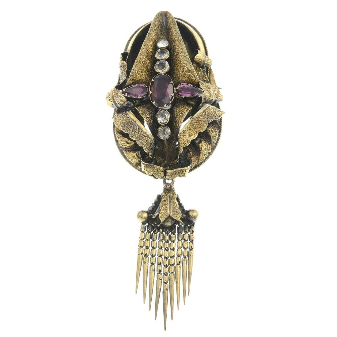 A mid 19th century gold gem-set brooch.Gems include