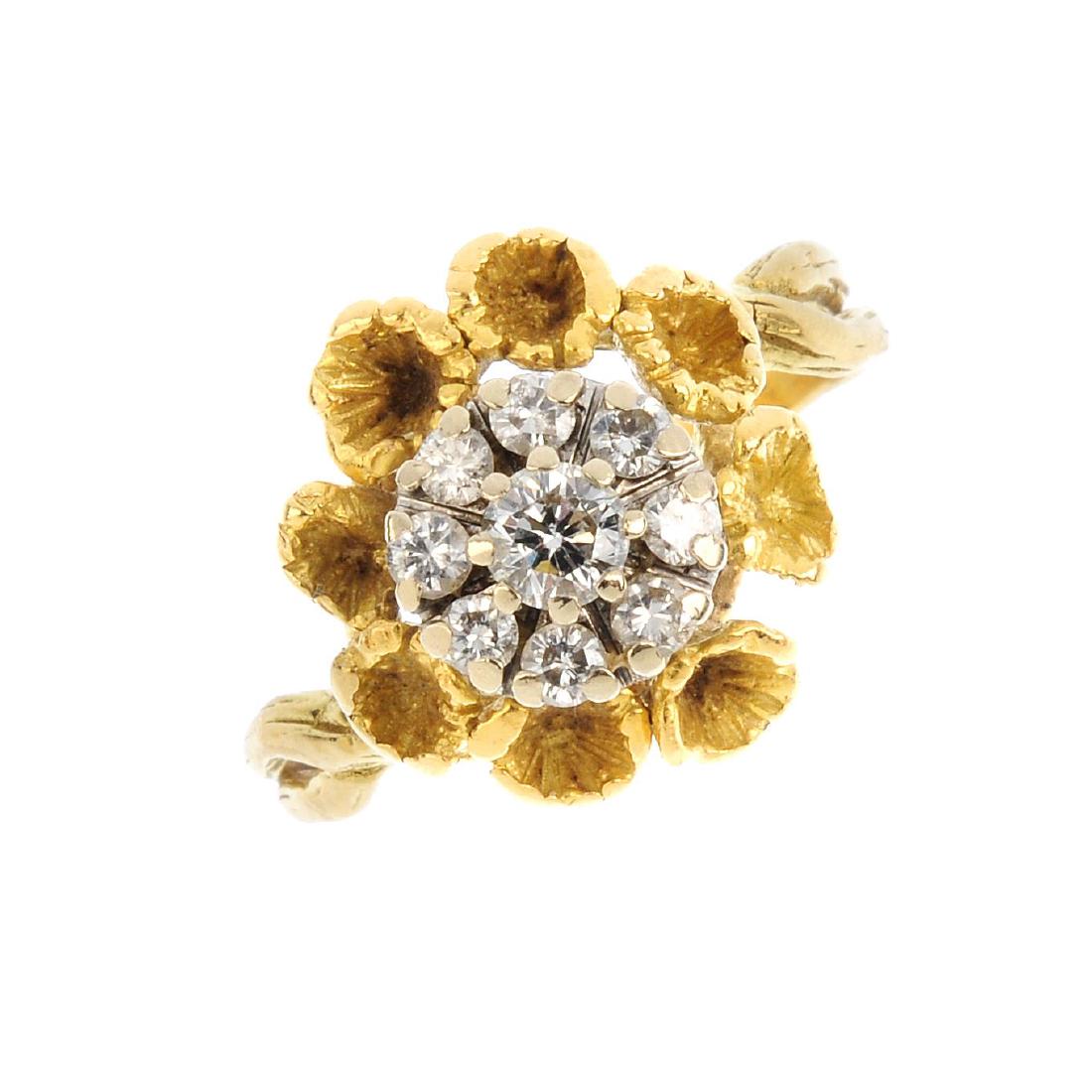 A mid 20th century diamond cluster ring. Designed as a