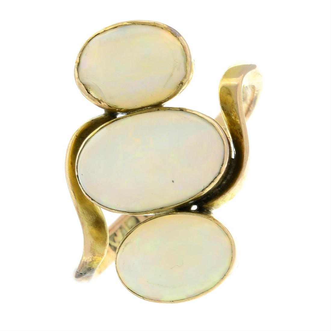 SoldTwo late 19th and mid 20th century 18ct gold diamondTwo late 19th and mid 20th century 18ct gold diamond and gem rings. To include a late 19th century graduated opal cabochon three-stone ring with diamond point double spacers, together with a similarlySee Sold Price