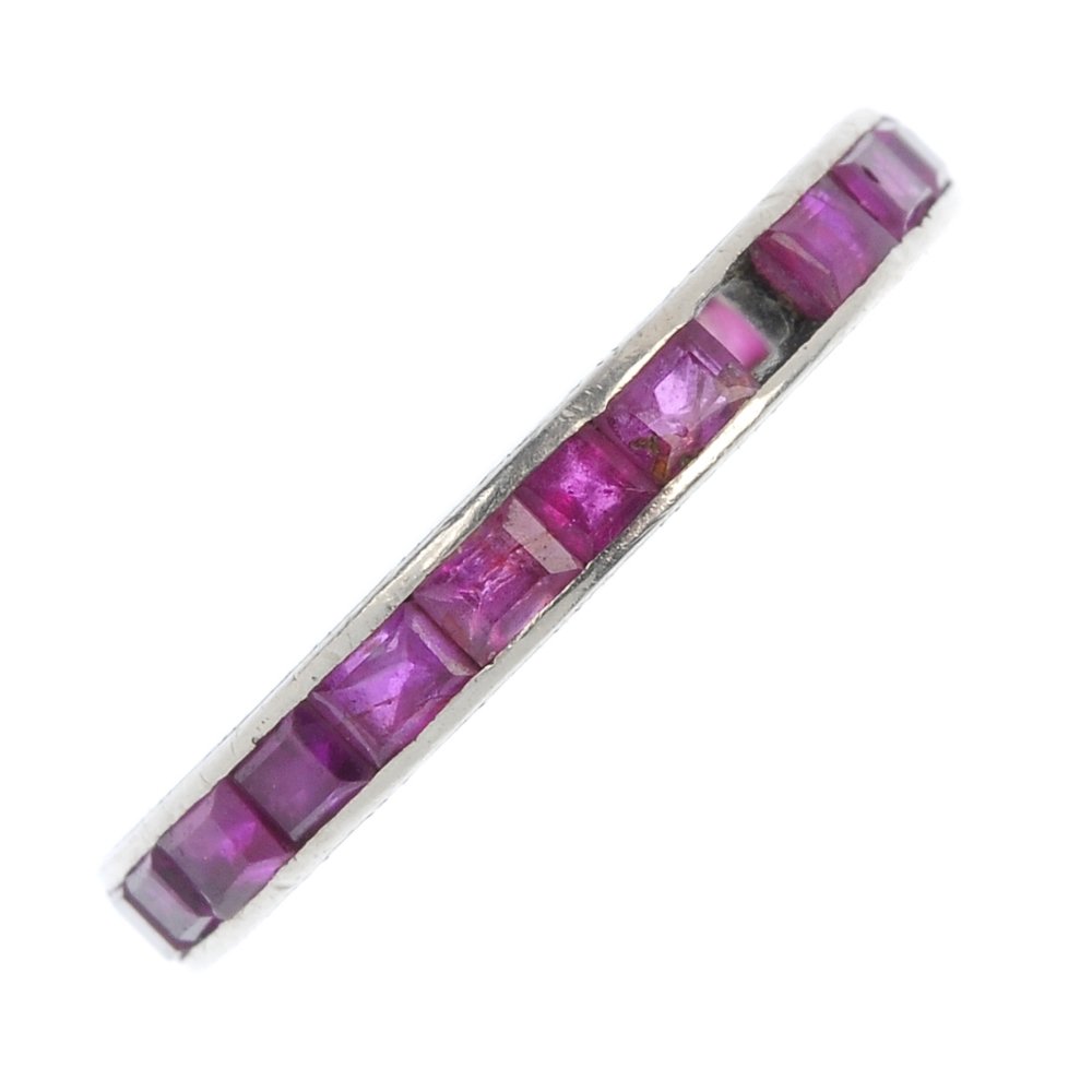 Sold2CT ruby full eternity ring stack band sz7.5New. 2.00 CT Natural Ruby Full Eternity Engagement Band Ring Size : 7.5 Handmade item Materials: Silver Gemstone: Ruby Gem color: Red Band color: Silver Style: Mid-centurySee Sold Price