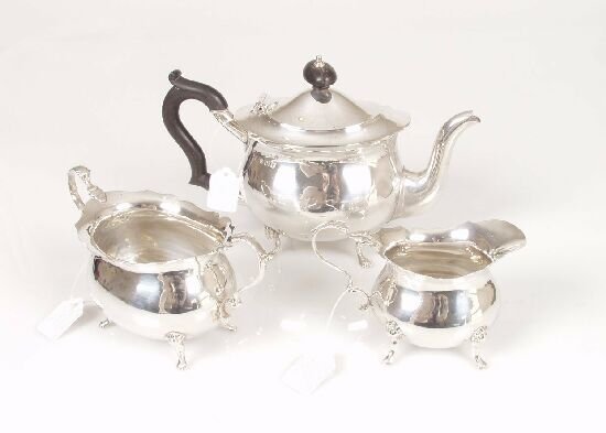 A mid 20th Century three piece silver t