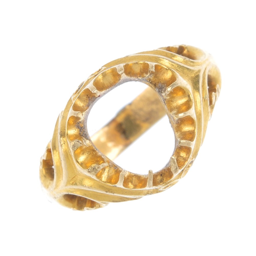 A mid Victorian gold ring mount., circa 1860. The